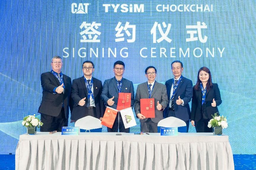 多年來,“創(chuàng)新”的基因已融入企業(yè)的血脈中,泰信制造的多款卡底旋挖鉆機均在市場中獲得的極佳反饋。泰信與卡特彼勒的深度合作,既是泰信的創(chuàng)新之舉,也是強強聯(lián)合共謀發(fā)展的明智之舉??ㄌ乇死展咀鳛樘┬趴ㄌ叵盗行阢@機底盤的高端品牌供應(yīng)商,對與泰信機械的創(chuàng)新合作模式表示高度認可。三位卡特彼勒相關(guān)負責人現(xiàn)場致辭并表示卡特將與泰信保持良好的合作伙伴關(guān)系,為泰信卡特系列旋挖機在全球范圍內(nèi)的市場做好全方位的售后保障工作,相信泰信卡特系列旋挖鉆機將在全球基建項目中綻放光彩。
