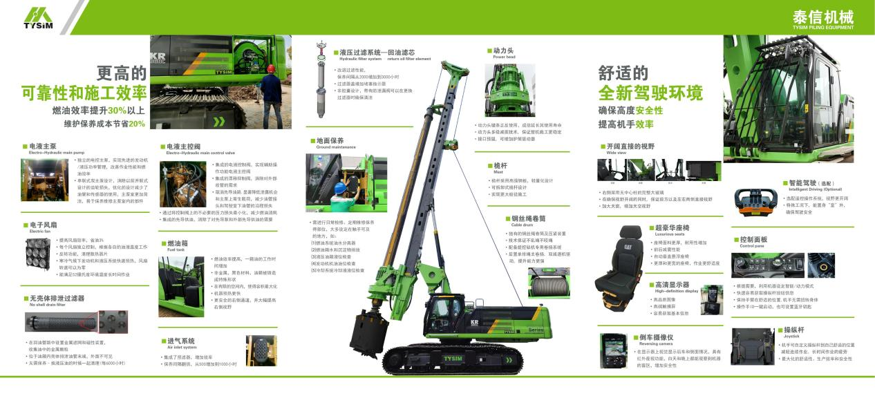 In recent years, China's infrastructure industry has made remarkable achievements in the global market. With advanced technology, rich experience and efficient execution capabilities, it has become an important force in promoting global infrastructure construction. In the field of piling industry, Chinese companies have continuously increased their R&D investment and launched a series of internationally competitive products, such as the Caterpillar KR360C rotary drilling rig of TYSIM, which not only meets the needs of the domestic market but is also widely exported to all parts of the world, providing strong equipment support for global infrastructure construction.